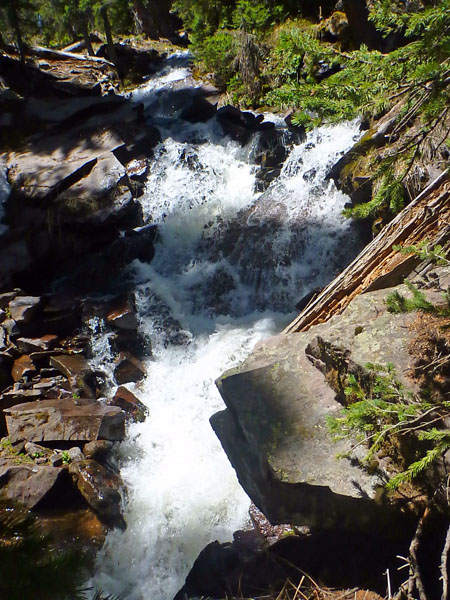 The hike out started out next to a beautiful stream cascading its way down the valley. It reminded me a lot of one of my favorite routes in the San Juan’s. However, very quickly it turned into a fairly nasty bushwhack. This was the one part of the route I was concerned about, knowing that there had been a huge blow-down event a couple years before. As this wasn’t a maintained trail, none of that would be cleared if it was as bad as other areas.